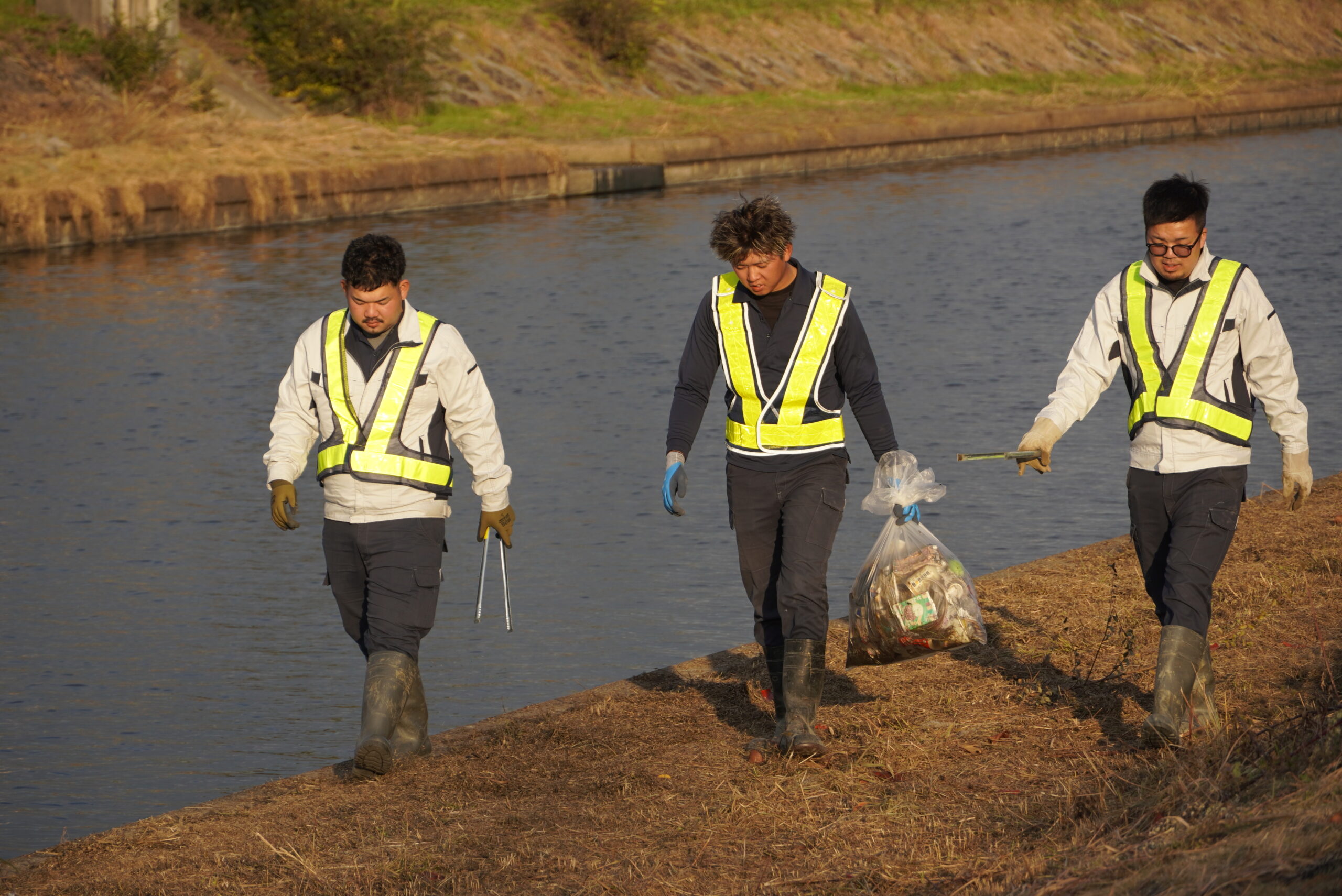 本社前を流れる吉岡川は、私たちにとって身近で大切な自然資源。美しい景観を次世代に引き継ぐため、社員一同が力を合わせて清掃活動に取り組みました🍀