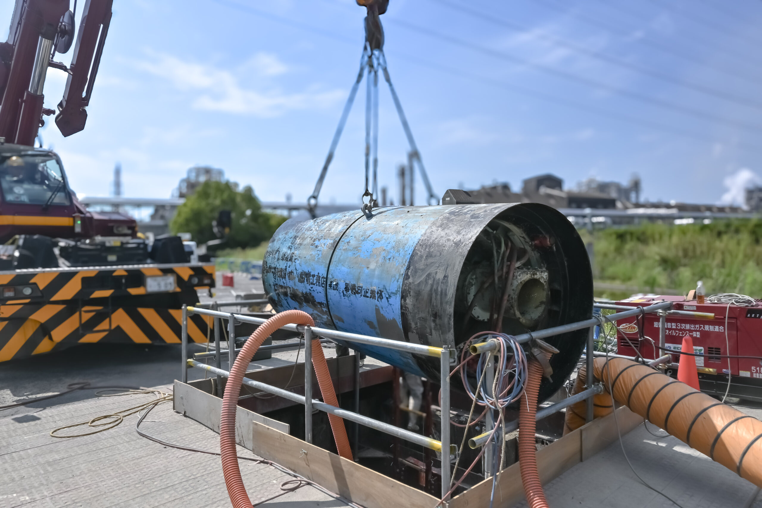 9月1日のニュースでもご紹介した、亀島41号線配水管布設工事における『掘進機 ※地中を掘り進みながら管を埋設するための機械』が9月15日、無事到達地点に到達しました! トップの写真は、その『掘進機』が回収された瞬間の写真です📸