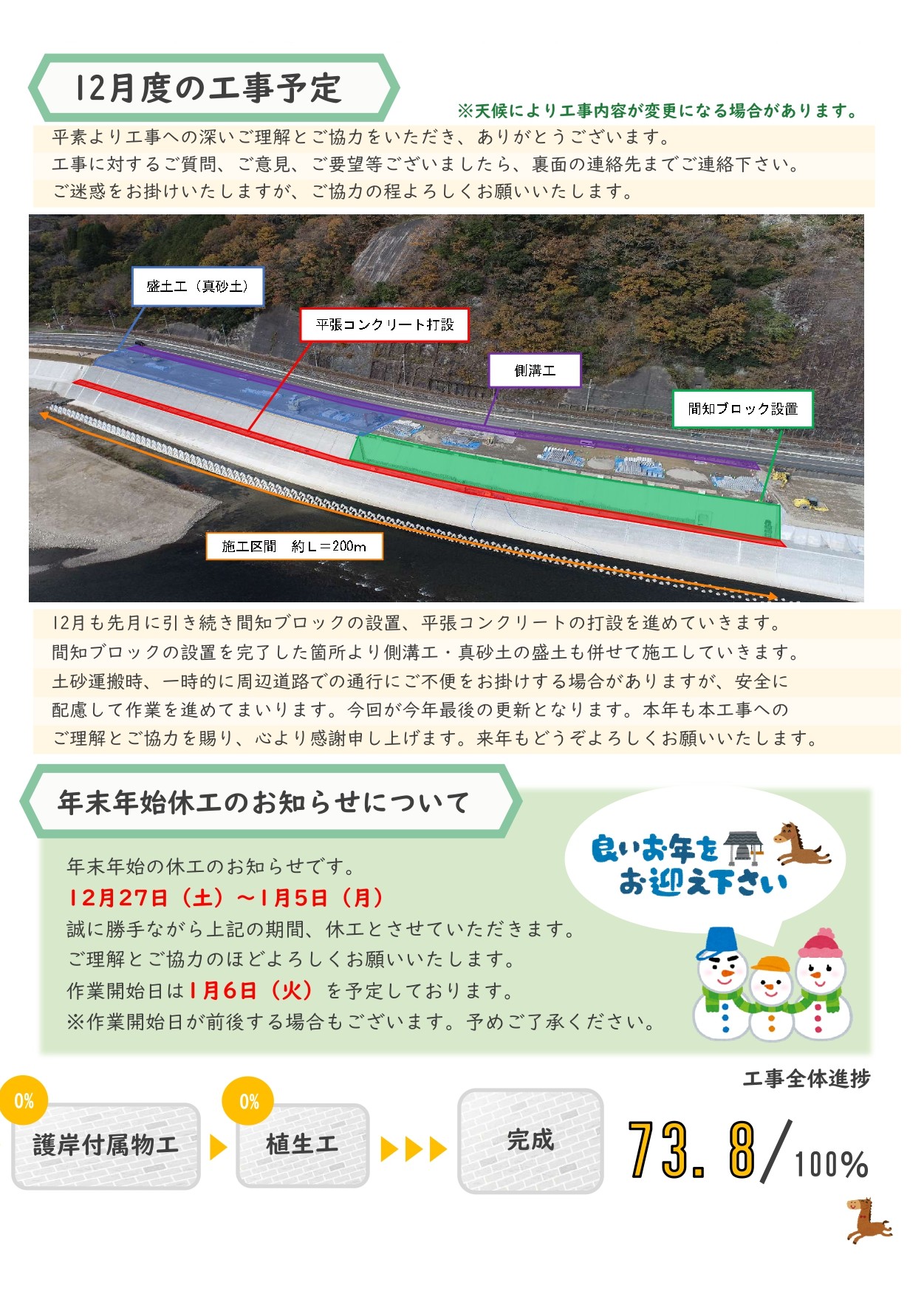 また、現場情報誌にも掲載しておりますが、本工事の年末年始休工について以下の通りお知らせいたします。