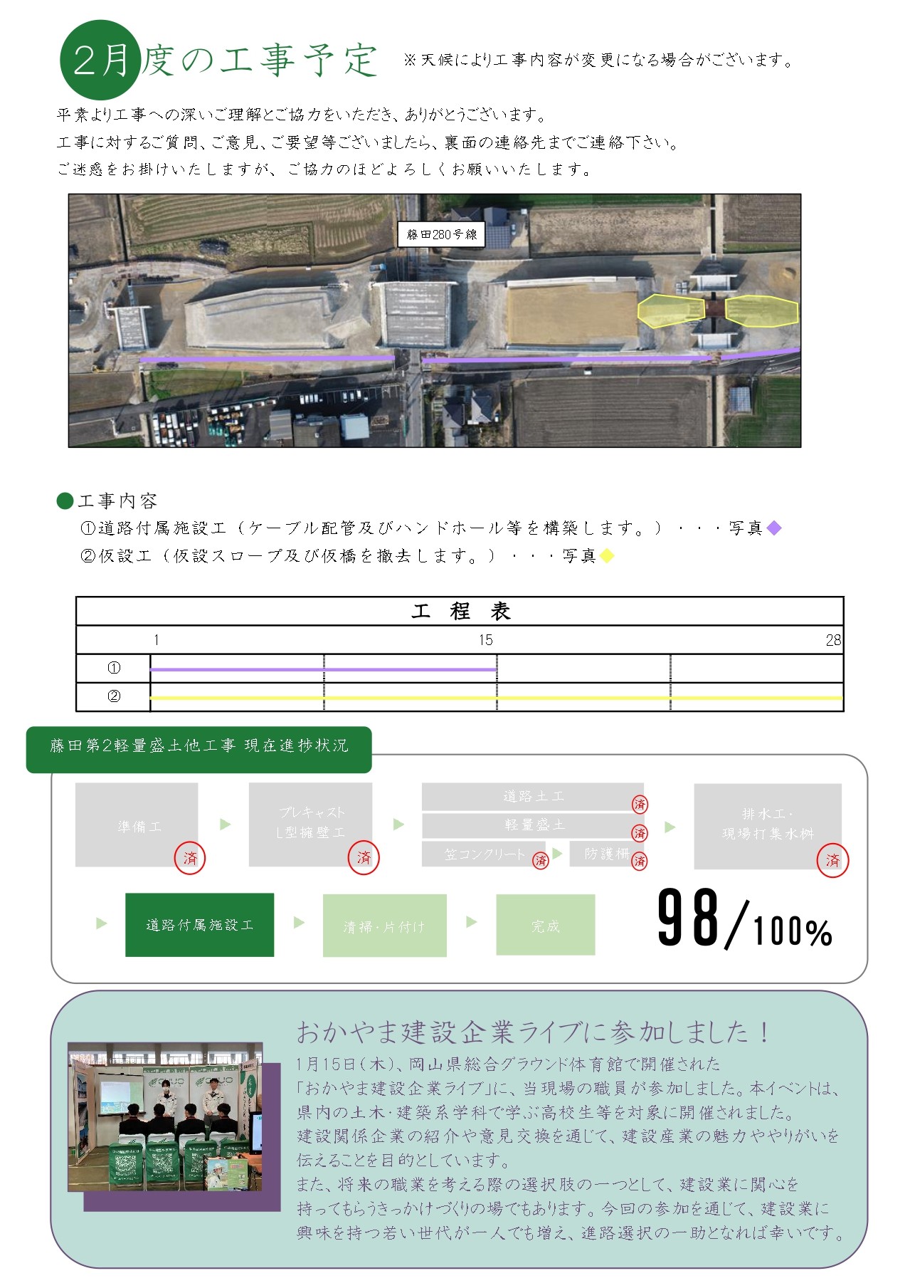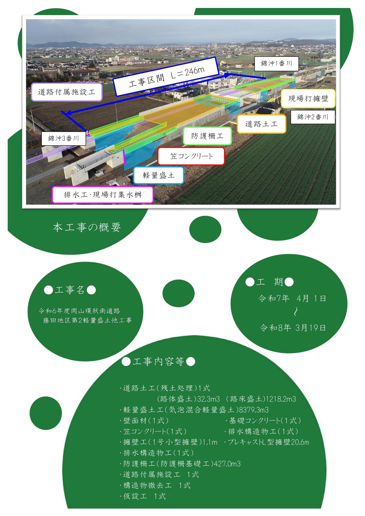 令和6年度岡山環状南道路藤田地区第2軽量盛土他工事(以下、藤田地区第2軽量盛土工事)の現場情報誌