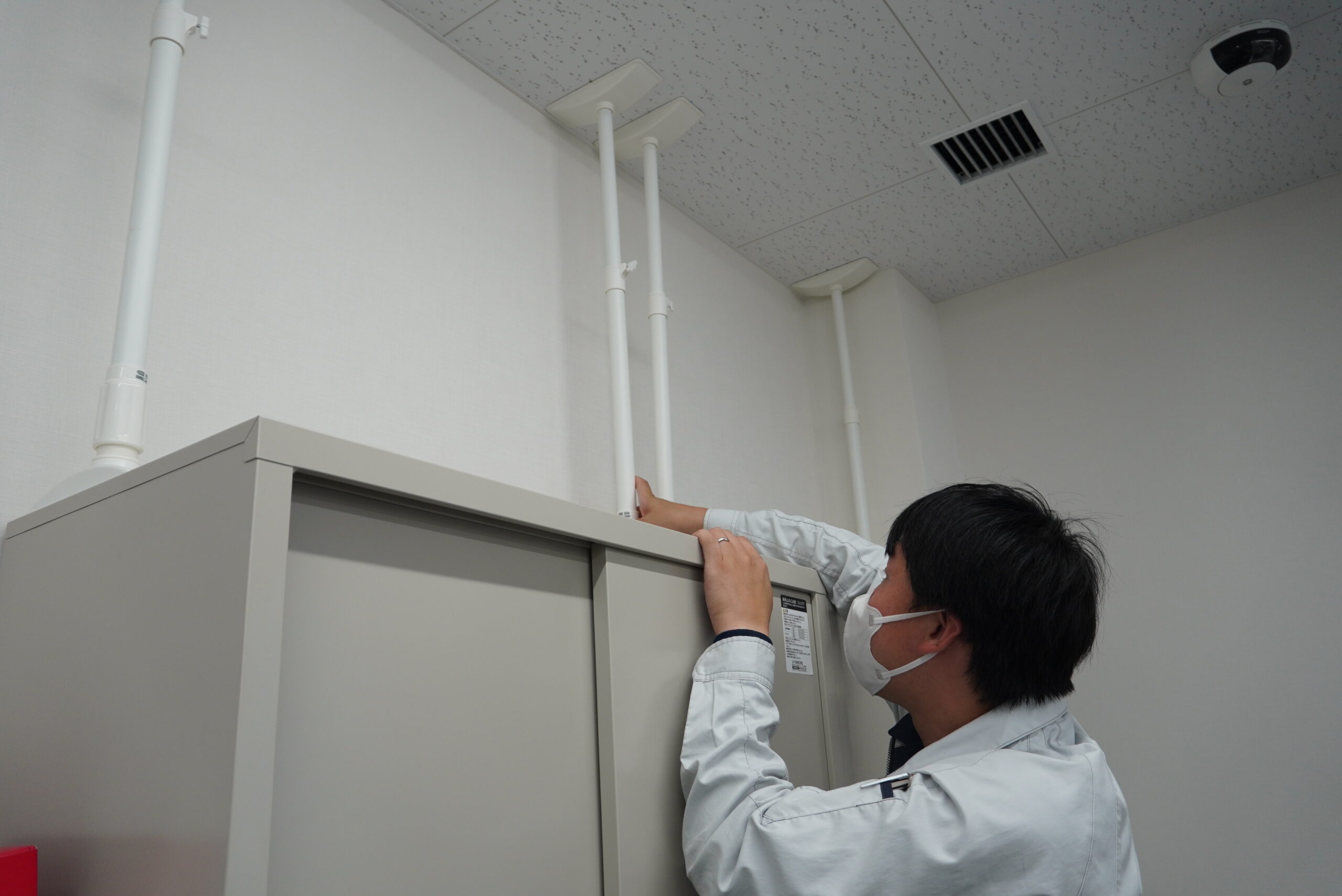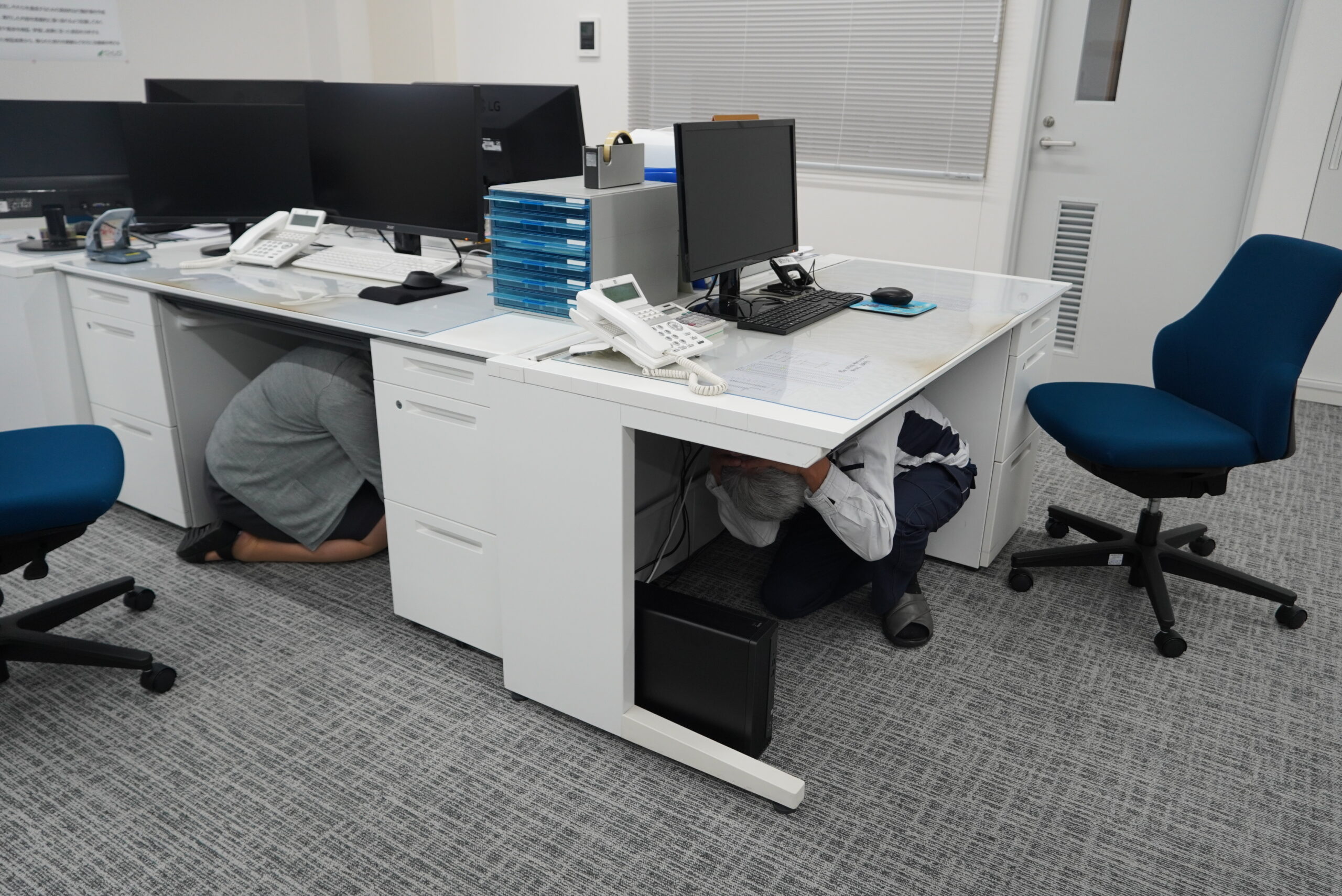 今回の訓練では、地震発生時の初動対応を中心に、緊急時における安全確保行動を確認し、実際に行動へ移すことで防災意識を高めました。さらに「プラスワン訓練」として、社員の安否確認訓練や備蓄品の点検、棚などの固定状況の確認も実施し、より実践的な防災対策に取り組みました。